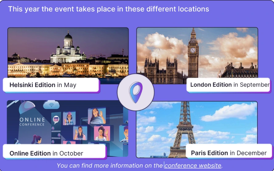 Later in the year, I thought it would be a great idea to bring back the online conference to provide an opportunity for those who can't travel but still want to speak and share their expertise. This idea completed the entire experience, bringing the total number of events to four.